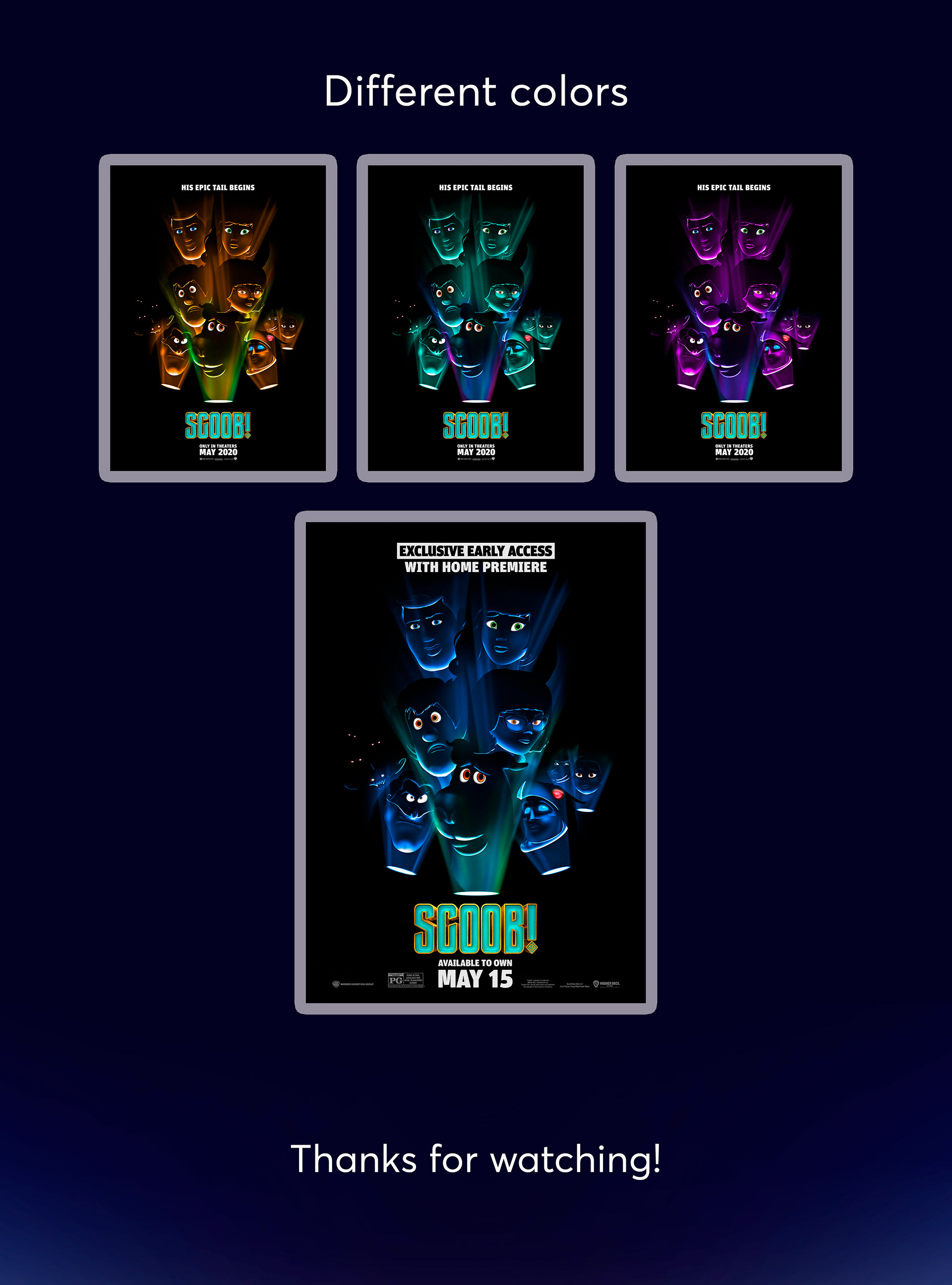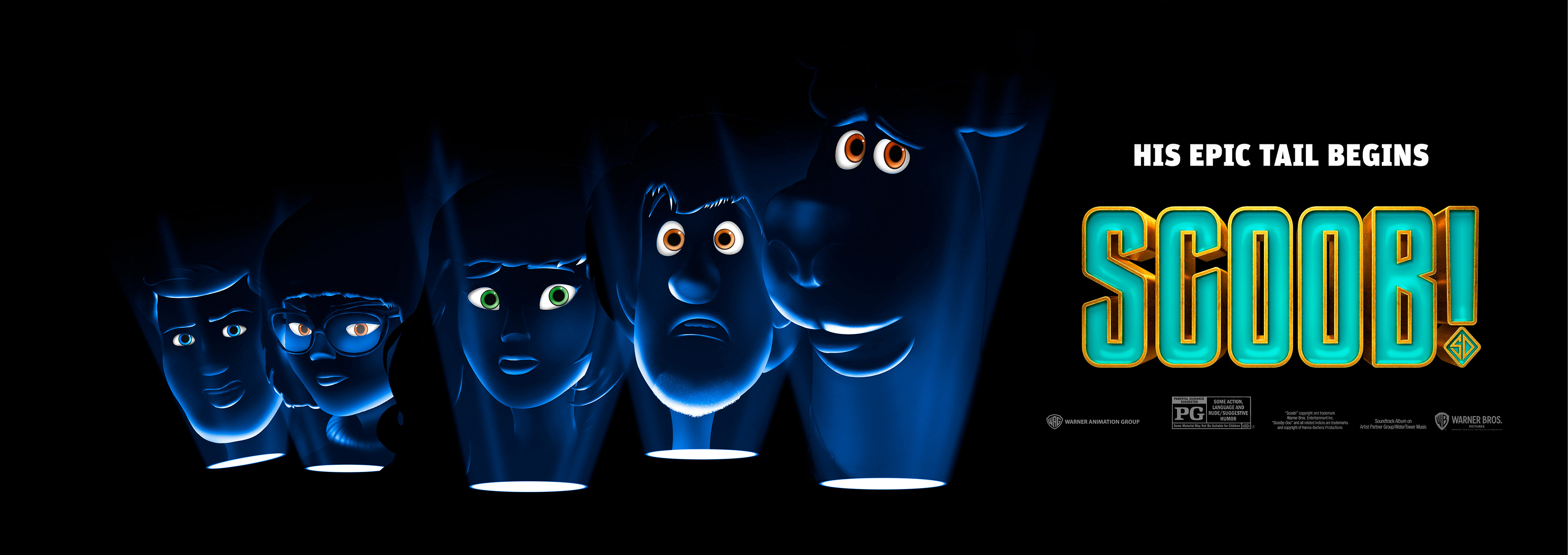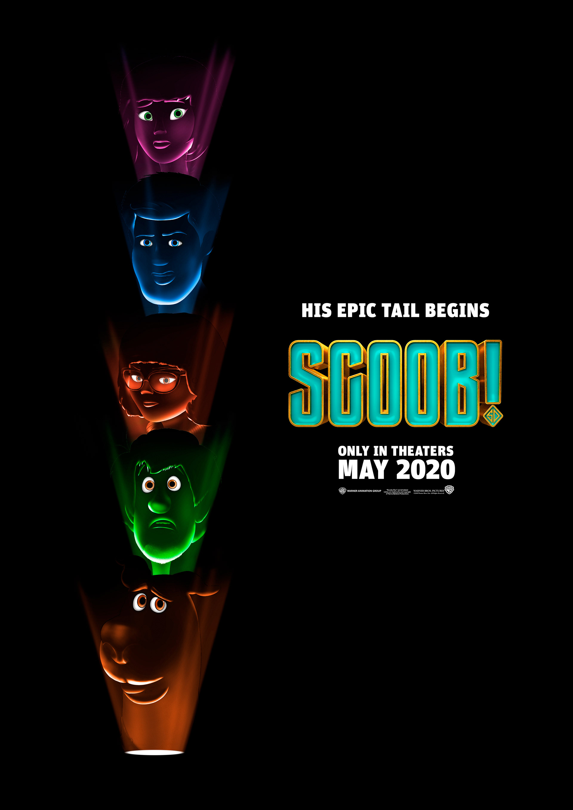 This is my new poster for the Scoob movie, which shows the characters in a dark environment and lighting with flashlights.